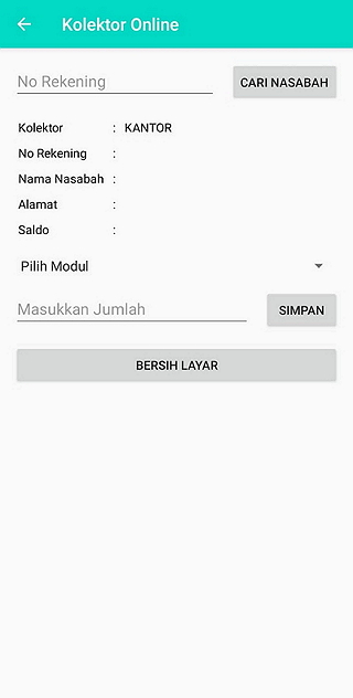 Berfungsi untuk ber-transaksi dengan nasabah, yakni pilihan input no rekening, akan terlihat nama , alamat & saldonya. Kemudian pilih modul untuk menabung/penarikan, Simpan akan otomatis tercetak ke printer yang terhubung.